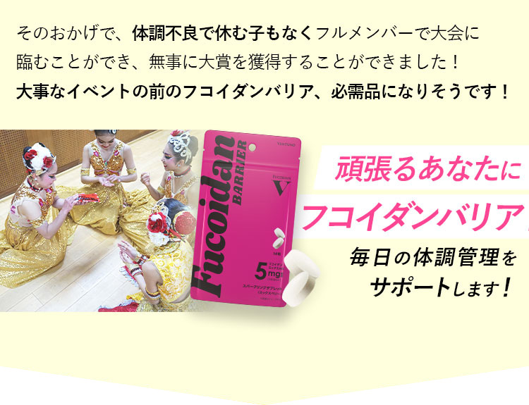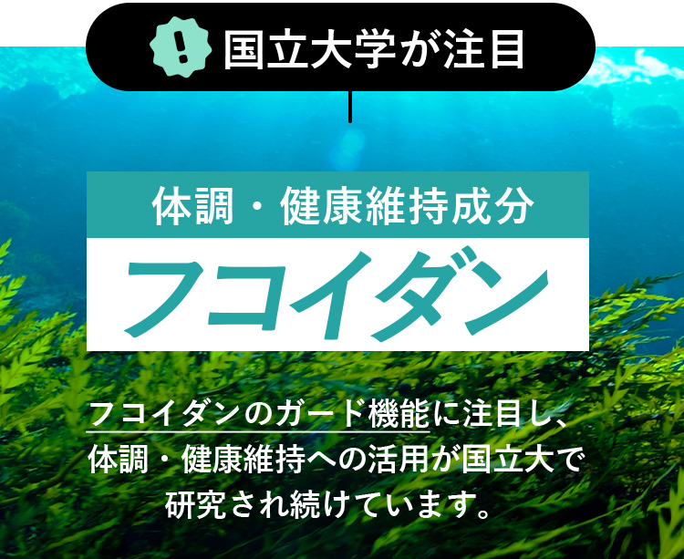 独自成分「フコイダンミックスAG」が凝縮されている 独自成分「フコイダンミックスAG」が凝縮されている_チェック GABA・シールド乳酸菌配合で体調ケアしてくれる GABA・シールド乳酸菌配合で体調ケアしてくれる_チェック GMP認定の国内工場で徹底管理のもと製造されている GMP認定の国内工場で徹底管理のもと製造されている_チェック ここぞの時の前の体調管理対策ができる ここぞの時の前の体調管理対策ができる_チェック 特別キャンペーン価格で利用することができる 特別キャンペーン価格で利用することができる_チェック