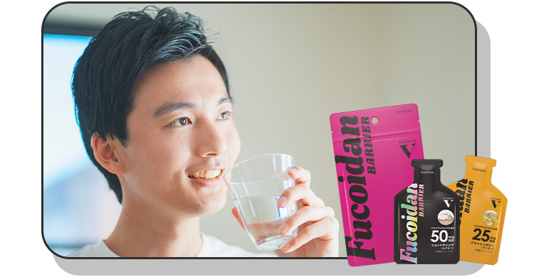 発揮したい!最高のパフォーマンス 朝から全力で仕事に打ち込む 週末の趣味や遊びを楽しみ尽くす 1日中子どもと一緒に遊びたい なのに、ここぞの時に限って雲行きがあやしい…。 そんな時の味方!ここぞ!の前の栄養補給に!Fucoidan Barrier